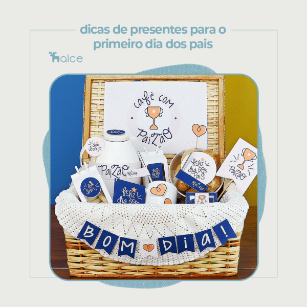 Gosta de experiências? Reserve um café da manhã especial em casa, com a mesa decorada e um varal de polaroids do ultrassom até o dia atual. No final, entregue um “kit futuro” com body combinando, camiseta para o papai e um bilhetinho do bebê. São dicas de presentes para o primeiro dia dos pais simples, com alto impacto emocional.