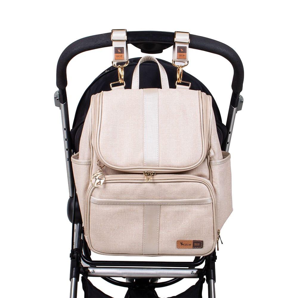 Conveniência Suprema: A alça para pendurar bolsa no carrinho de bebê elimina a necessidade de encher o compartimento de armazenamento do carrinho com bolsas volumosas. Isso proporciona mais espaço para outros itens essenciais e garante fácil acesso aos pertences do bebê.