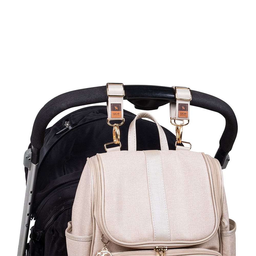 Múltiplos Usos: Além de ser ideal para pendurar bolsas de fraldas e itens do bebê, a alça também pode ser usada para pendurar sacolas de compras leves, mochilas pequenas e outros acessórios, tornando-a útil mesmo após a fase de bebê.