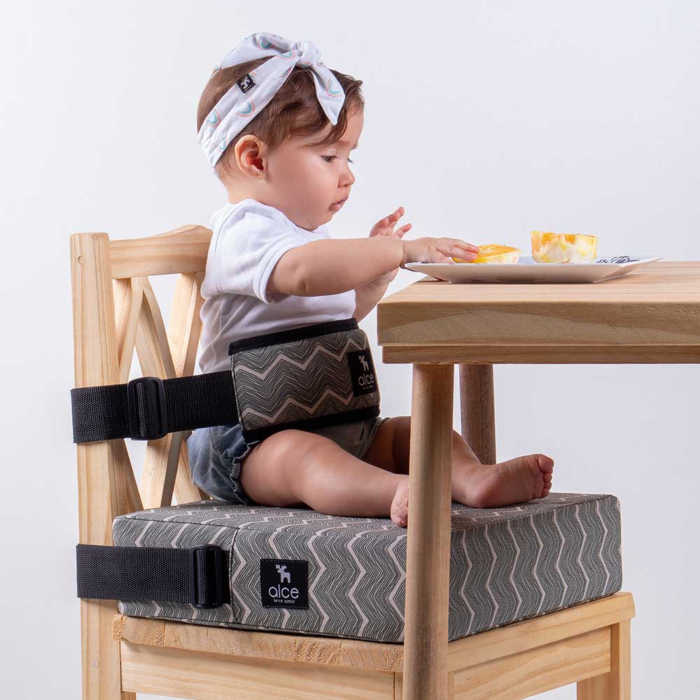 O assento auxilia nesse momento incluindo a criança a mesa da família, pois uma das formas mais efetivas de aprendizagem para o bebê é a imitação.