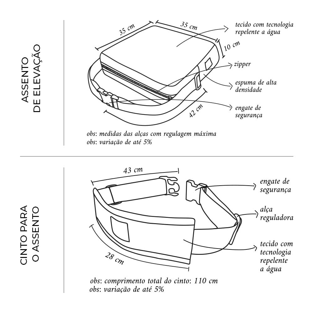Capa do assento é removível, fabricada em tecido impermeável e de fácil higienização. Ideal para ser usado durante as refeições desde a introdução alimentar (com o cinto para crianças de até 2 anos) e ter a família toda reunida a mesa!