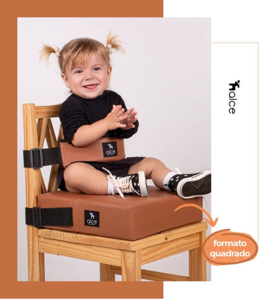O assento auxilia nesse momento incluindo a criança a mesa da família, pois uma das formas mais efetivas de aprendizagem para o bebê é a imitação.
