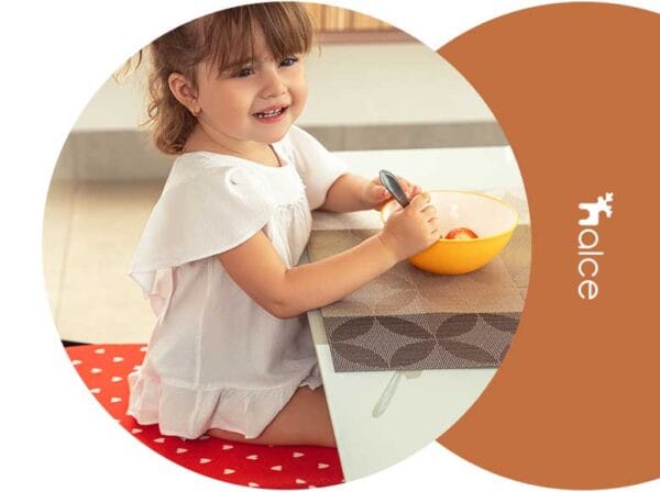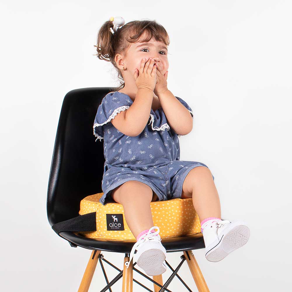 O assento possibilita que as crianças experimentem o máximo possível de sensações desde o seu primeiro contato com os alimentos, fazendo também com que ela seja incluída na mesa com a família.