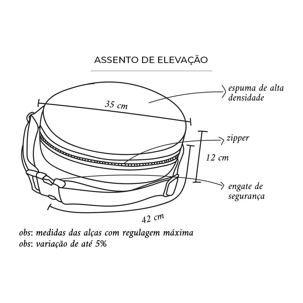 Capa do assento é removível, fabricada em tecido com tecnologia repelente a água. Quando necessário é possível lavar à máquina.