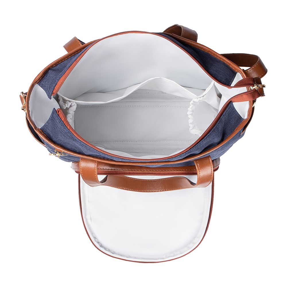 A bolsa Alce Lebaby vem na cor jeans com detalhes em caramelo e metais dourados, além de moderna ela é uma bolsa leve que possui um amplo espaço interno para levar tudo que o bebê precisa. Por dentro ela tem forro impermeável, dois bolsos laterais com elástico para mamadeira ou copinho e mais dois bolsos organizadores grandes. Na parte externa temos 1 bolsão frontal com zíper e mais dois laterais e 1 bolso amplo na parte de trás da bolsa.