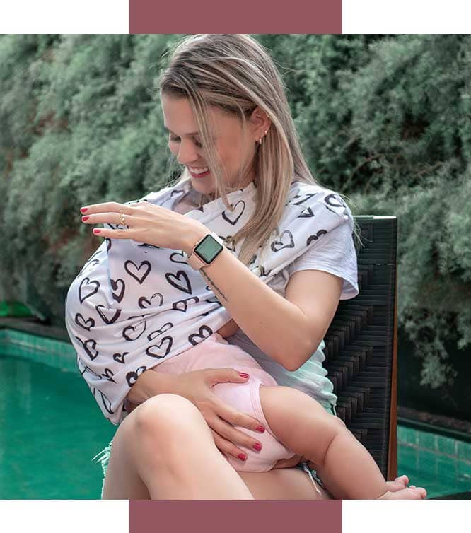 A capinha oferece privacidade para esse momento de conexão mamãe e bebê, para as que assim preferirem.