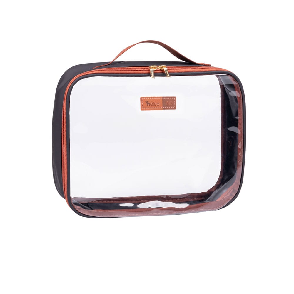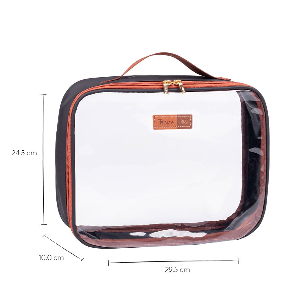 Produzidas em material sintético resistente e de fácil limpeza, possuem tela cristal transparente, permitindo visualizar os itens sem precisar abrir. Além disso, o acabamento refinado com metais de alta qualidade garante durabilidade e um toque sofisticado.
