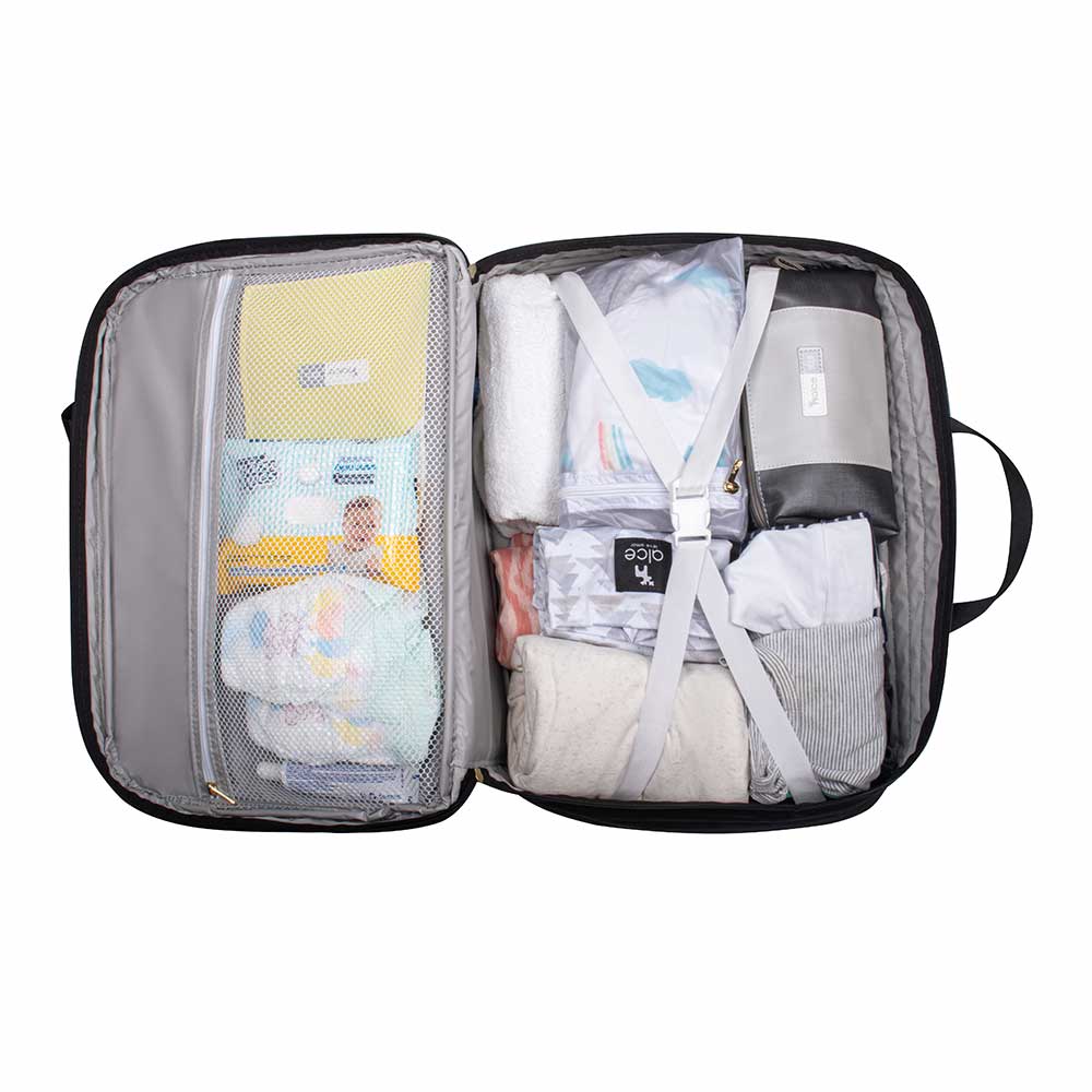 Além de linda e estilosa, a Mala Maternidade Cores é super prática de usar e bem estruturada, possui um compartimento interno com zíper e redinha, que pode ser usado para separar alguns itens como fraldinhas, paninho de boca, meinhas, na hora de levar tudo para a maternidade. Possui também um elástico para prender as roupinhas, o tecido é 100% impermeável. A mala maternidade é ideal para os primeiros anos de vida do bebê, desde a ida para a maternidade até os próximos passeios e viagens; o espaço dela é bem amplo, e cabe tudo o que o bebê precisa, as roupinhas, mantinha e itens de higiene por exemplo. Como sugestão, o correto é que a mamãe leve os lookinhos dos 03 primeiro dias separados e identificados já em saquinhos dentro da mala para facilitar na hora das troquinhas e do banho. E é claro além deles, levar roupinhas extras para os imprevistos do dia a dia de um recém nascido.