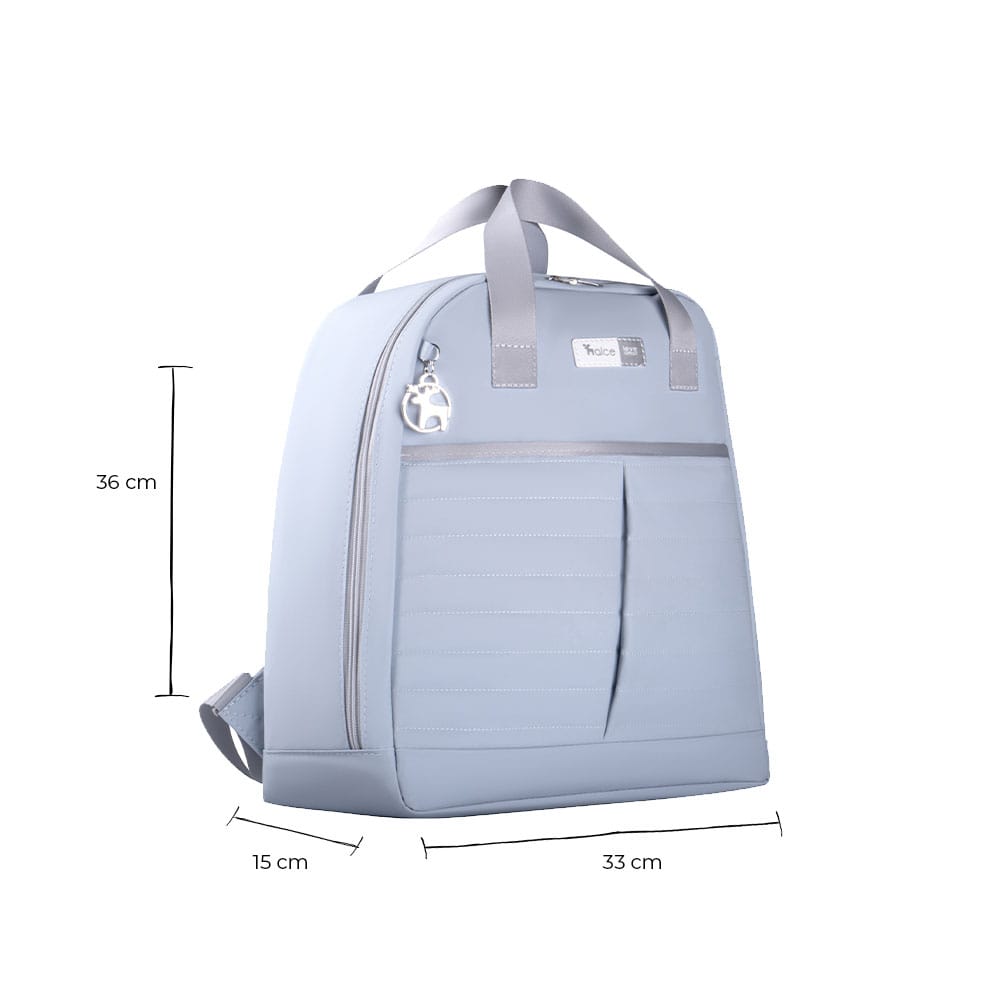 A Mochila Materna é leve, possui alças reguláveis e zíper que da a opção de abrir ela por completo facilitando a organização do dia a dia.