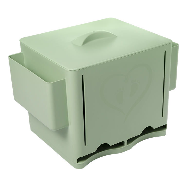 O Organizador de Fraldas 3 em 1 une praticidade, tecnologia e cuidado em um só produto. Com capacidade para até 40 fraldas descartáveis, ele também conta com suporte para lenços umedecidos e compartimento para cremes, facilitando a rotina de cuidados com o bebê.