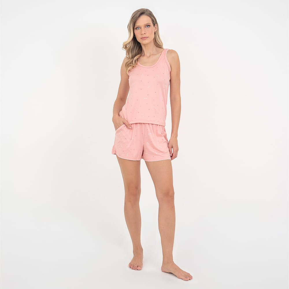 Delicadeza e conforto definem o Pijama Curto Regata Coração Rose.