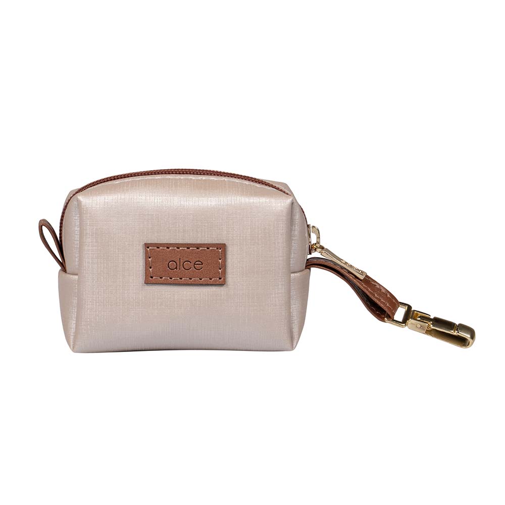 Porta chupeta Londres Pérola, com gancho para engate na bolsa e fechamento em zíper.