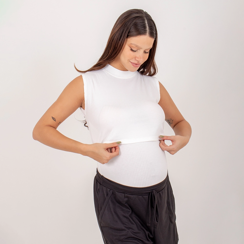 Portanto a Regata Amamentação Off é uma peça versátil, pode ser usada sozinha ou como base para composições com outras peças. Uma peça essencial para quem busca praticidade e liberdade de movimento durante todas as fases da maternidade inclusive no puerpério.