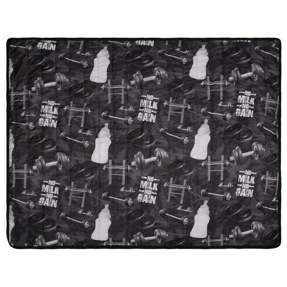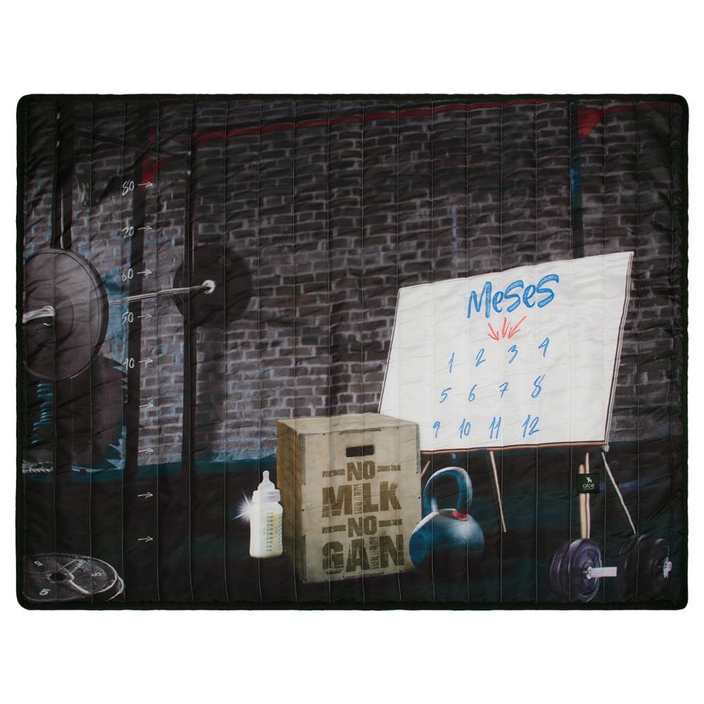 O tapete mesversário é dupla face, com estampa exclusiva no tema Baby Fitness, para as famílias que terão AMOR e DIVERSÃO em dobro!