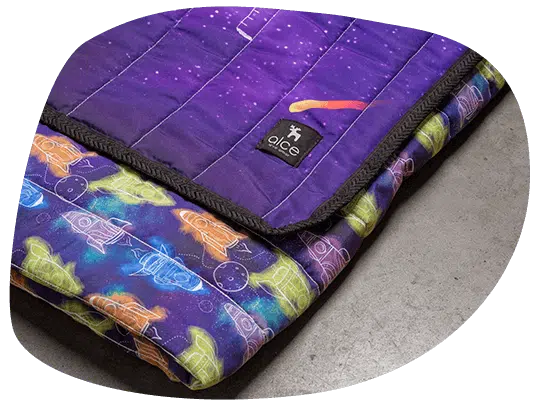 O tapete mesversário é dupla face, com estampa exclusiva no tema Espacial, desenvolvida com carinho por nossos designers, para registrar os 12 meses