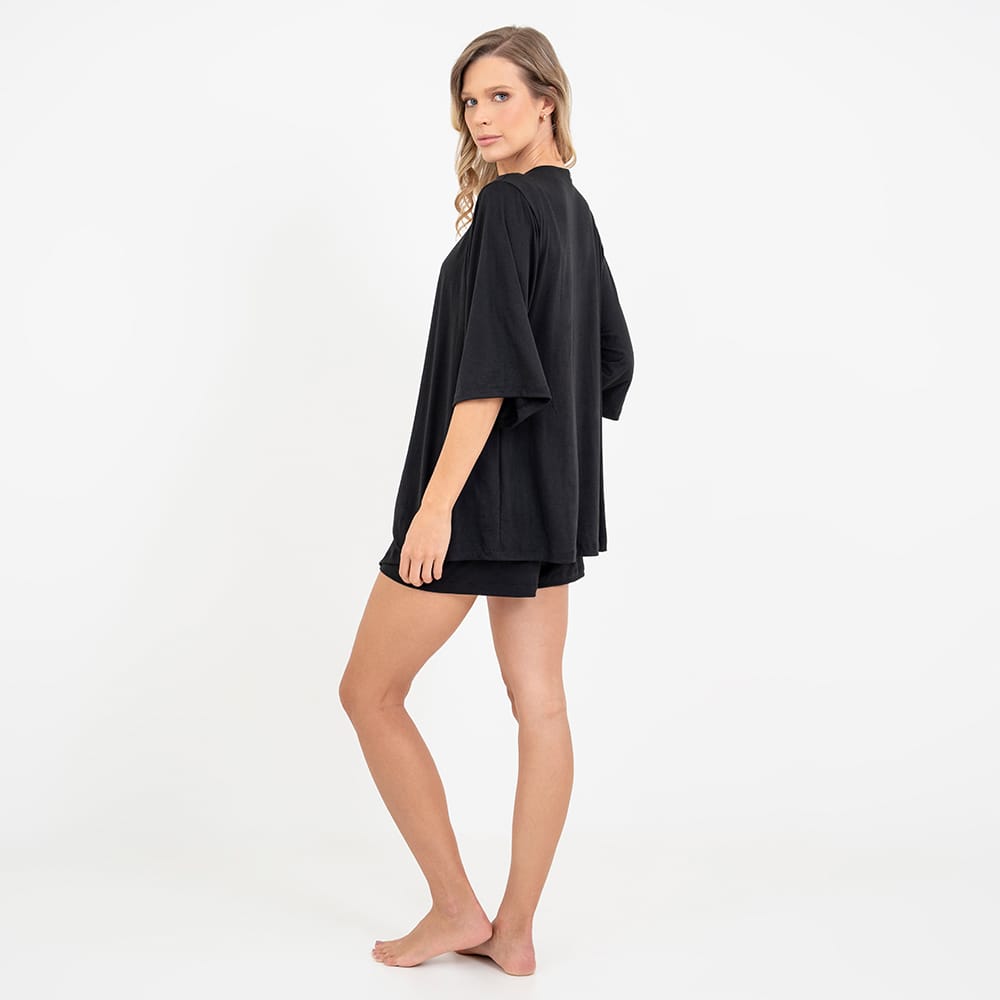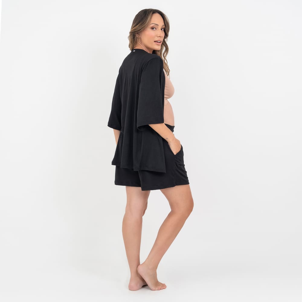 O Trijunto Curto Maternidade é a escolha perfeita para gestantes e puérperas que buscam conforto, praticidade e elegância em uma única peça. Composto por um top macio, um shorts ajustável e um robe fluido, esse conjunto é ideal tanto para momentos de descanso quanto para compor looks casuais modernos.