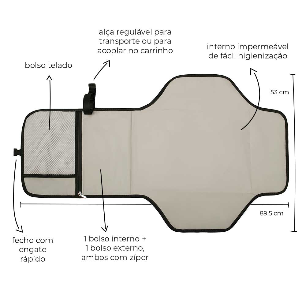 Um item essencial para viagens e passeios com o bebê. Funcionalidade e conforto para as trocas dos pequeninos, o trocador da ALCE é a melhor opção para essa tarefa, pois comporta de forma inteligente todos os artigos para troca, possui espaços bem compartimentados que trazem praticidade e organização.
